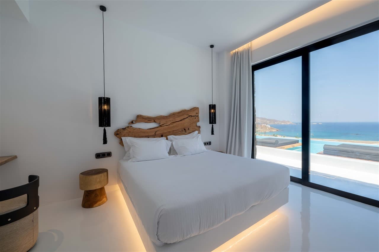 Whether you’re returning from a sun-drenched afternoon at Ftelia Beach or an evening sampling Mykonos’s nightlife, these bedrooms promise restful nights and tranquil mornings to prepare you for another unforgettable day on the island.